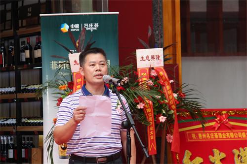 下午3时许,开业仪式正式开始,惠州名庄荟酒业有限公司陈立荟总经理致欢迎词,对前来参加开业庆典的领导、嘉宾和经销商表示热烈的欢迎,并感谢广大客户对惠州名庄荟酒业有限公司的信任与支持!